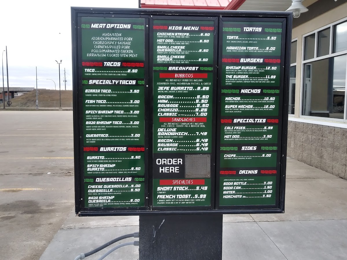 Our signature Jefe Burrito, Fresh scrambled eggs, homemade cubed season fries, pork sausage links, smoked ham, shredded cheese, house sauce, all wrapped in a warm 12" flour tortilla.